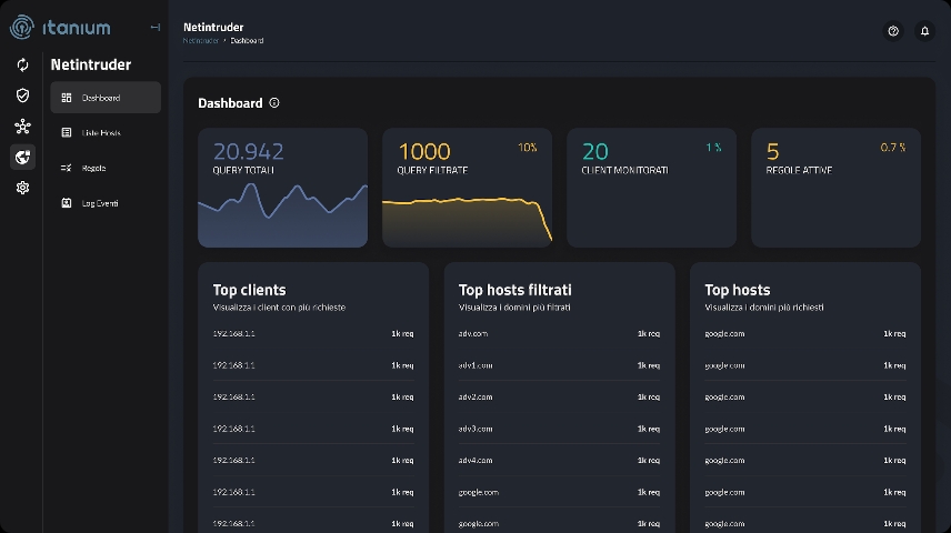 NetIntruder monitora in tempo reale ogni connessione e dispositivo sulla tua rete interna, rilevando all’istante accessi non autorizzati.